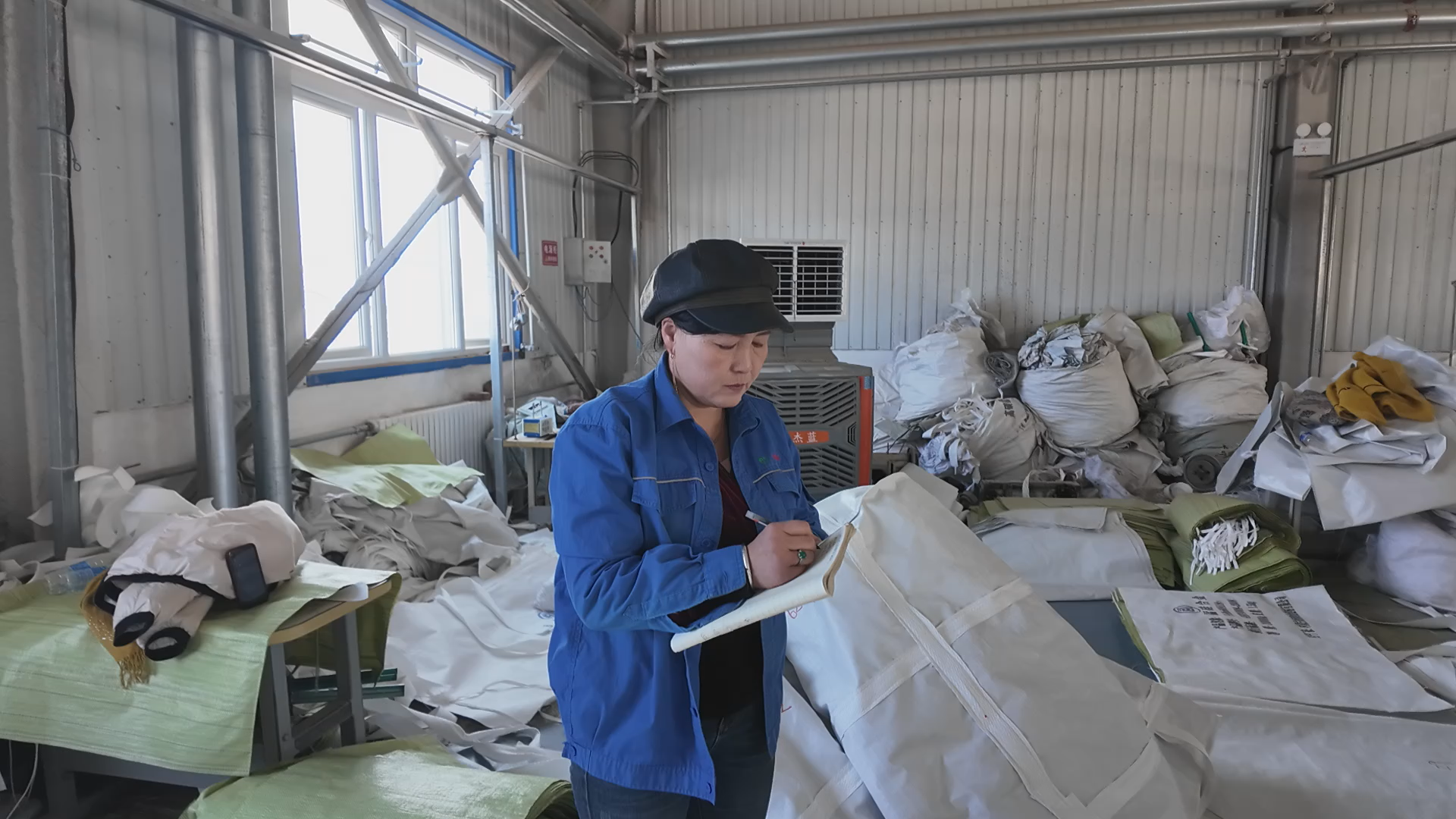 工友马娟说:“最开始这个机子我不会用,她给我教机子的怎么使用,教袋子怎么扎,一步一步来,一步一步的教,阿姨特别有耐心、热心肠,特别负责任。”