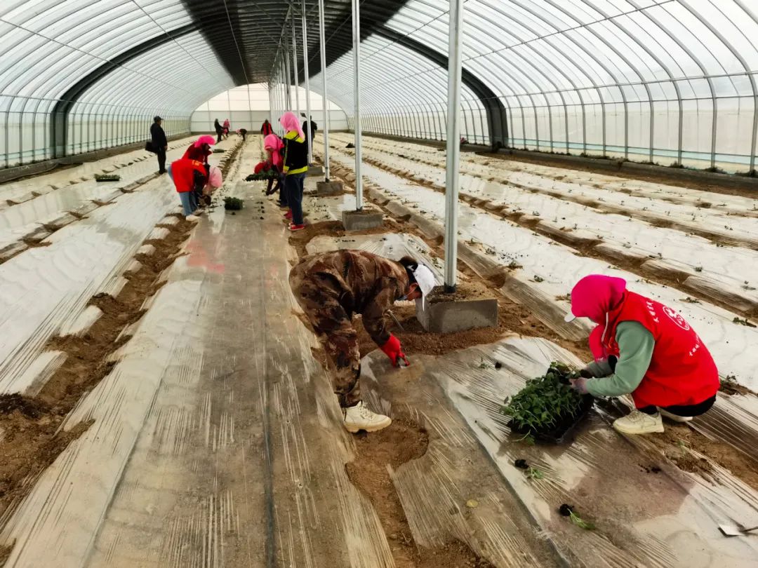 3月15日,在袁滩村西瓜种植大棚里,十多名村民正忙碌着定植西瓜苗,栽苗、浇水,现场一派繁忙景象。新栽植好的西瓜苗生机勃勃,孕育着丰收“新希望”。