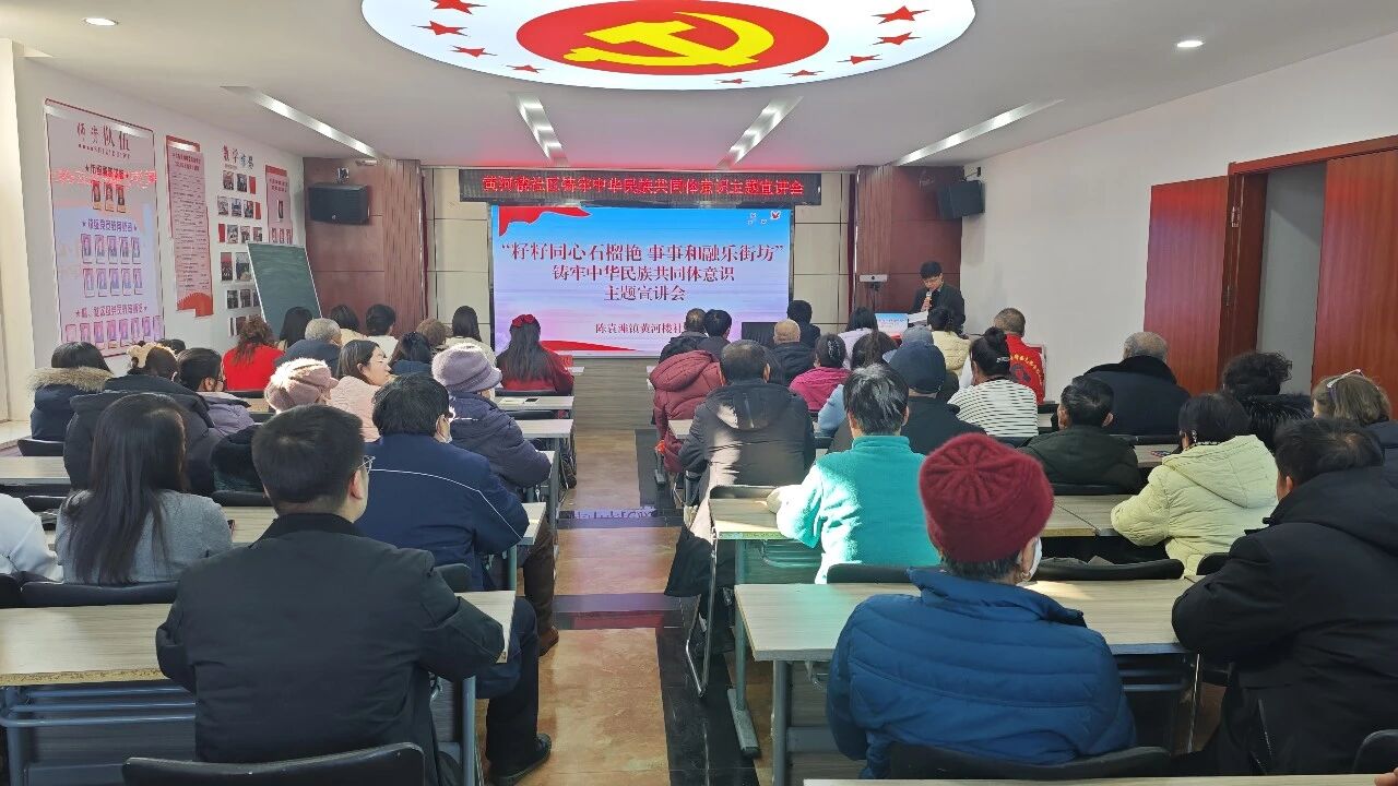 1月5日,陈袁滩镇黄河楼社区举办“籽籽同心石榴艳 事事和融乐街坊”铸牢中华民族共同体意识宣讲活动。