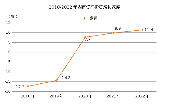 全年完成全社会固定资产投资比上年增长11.4%。在固定资产投资(不含区返、房地产)中,第一产业投资下降43.6%,第二产业投资增长26.7%,第三产业投资增长51.4%。政府投资比上年增长229.8%,民间投资比上年下降47.1%。
