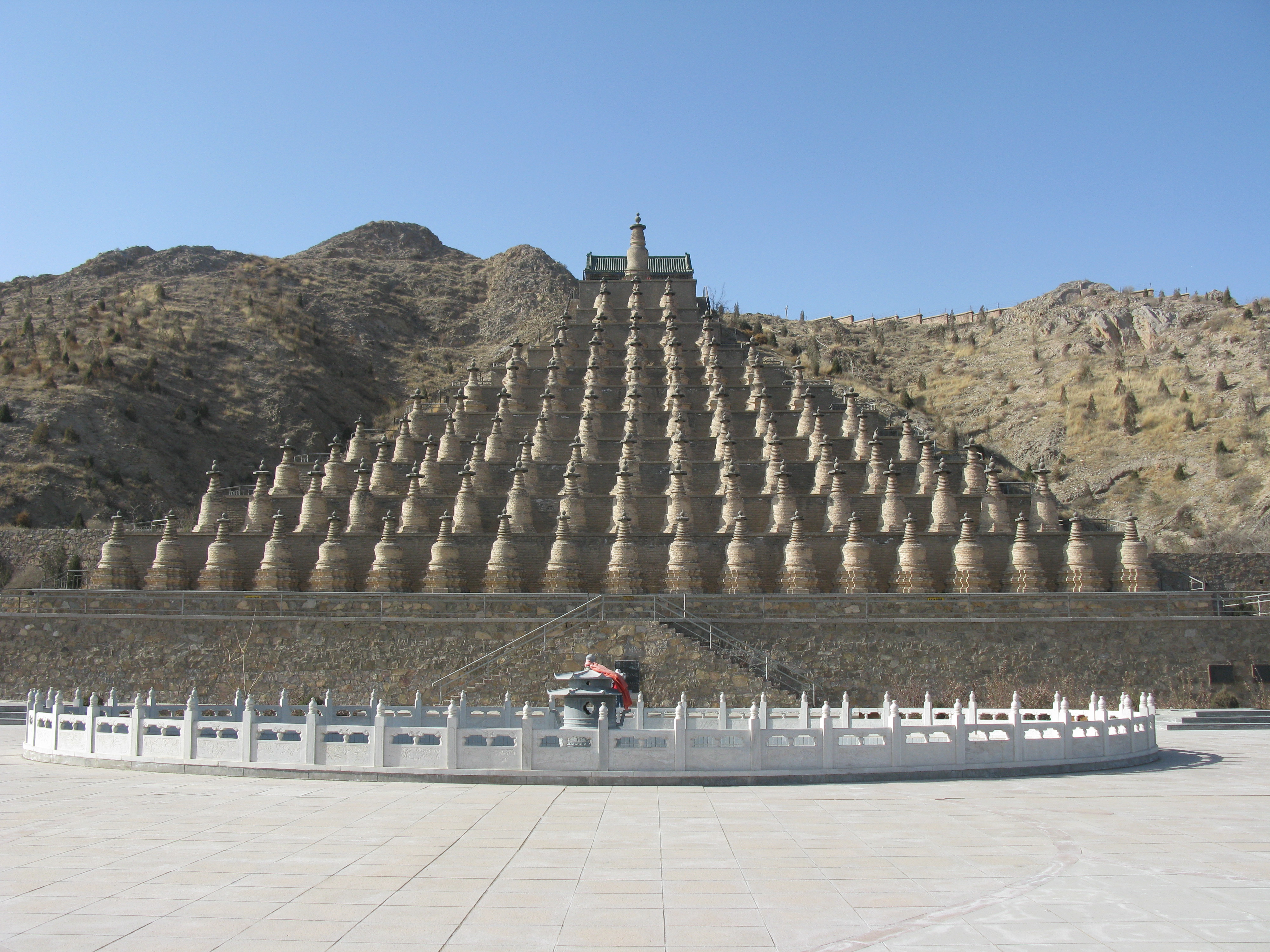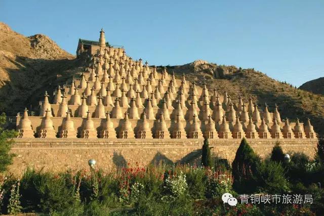 一百零八塔位于宁夏青铜峡黄河大峡谷AAAA级景区内,是由108座覆钵塔组成的大型塔群,因塔数而得名,1988年被国务院公布为第三批全国重点文物保护单位。塔群依山势凿石分阶而建,按1、3、3、5、5、7、9、11、13、15、17、19奇数排列成12行,呈等腰三角形状。该塔群是中国现存最大且排列最整齐的喇嘛塔群之一,整体建筑规模宏大,气势雄伟。一百零八塔所有的塔均由塔座、塔身、塔刹组成,塔的单体结构略有差异,有十字折角形和八角形束腰须弥座两种。塔身整体有覆钵式、葫芦形、圆筒状和折腹式四种,塔刹通为相轮伞盖宝珠顶。