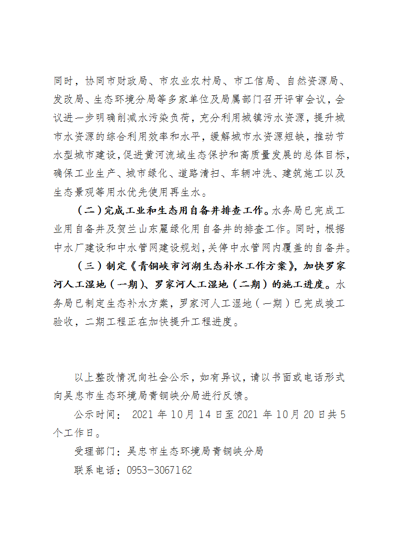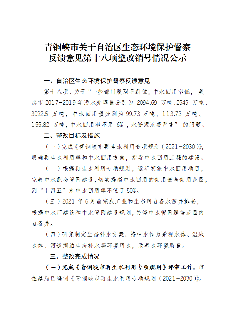 青铜峡市关于自治区生态环境保护督察反馈意见第十八项整改销号情况公示