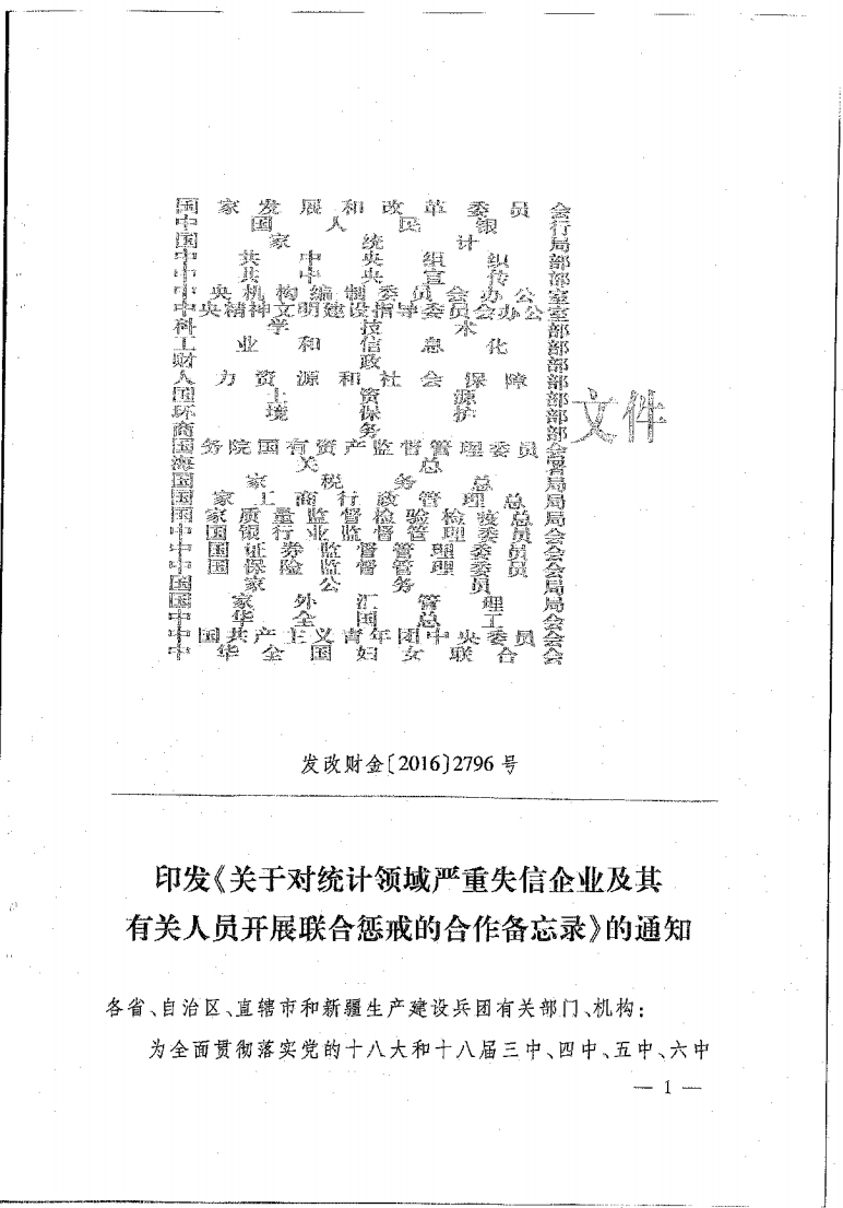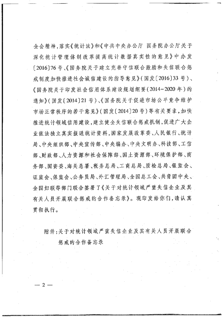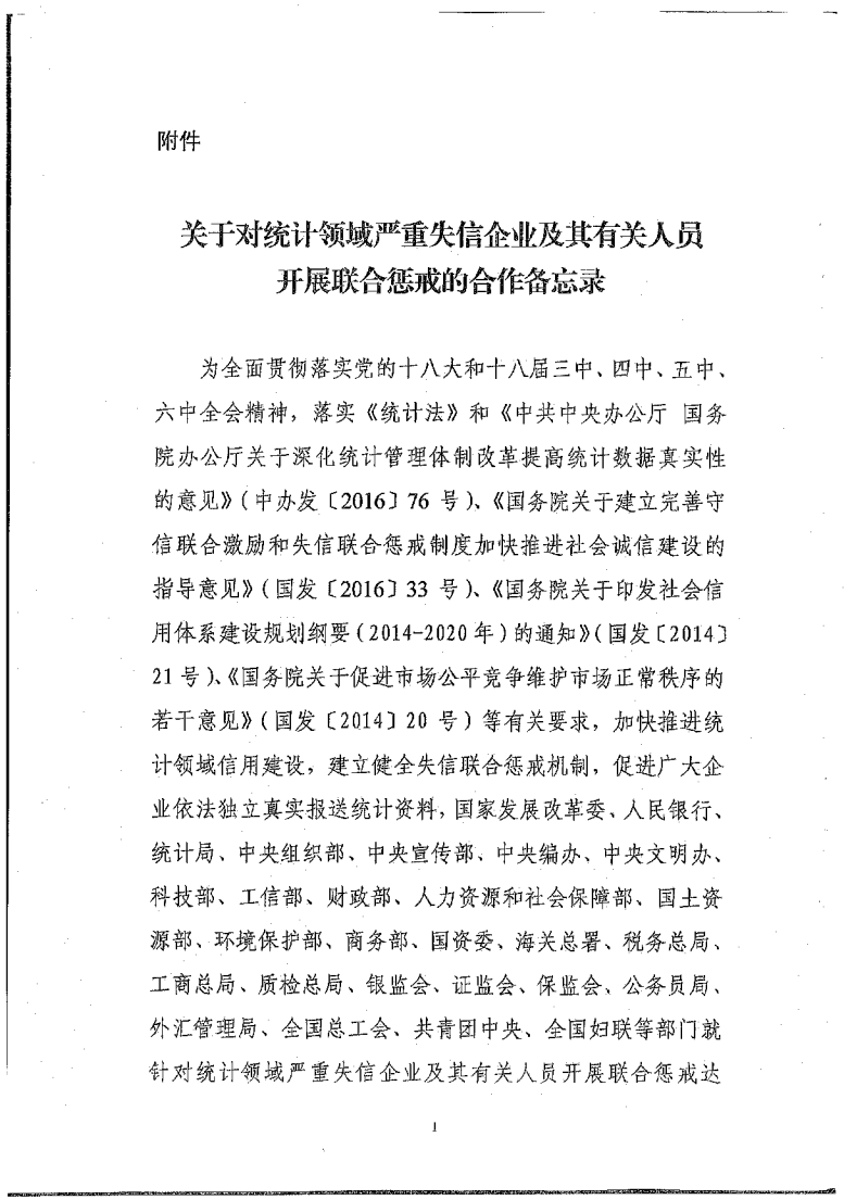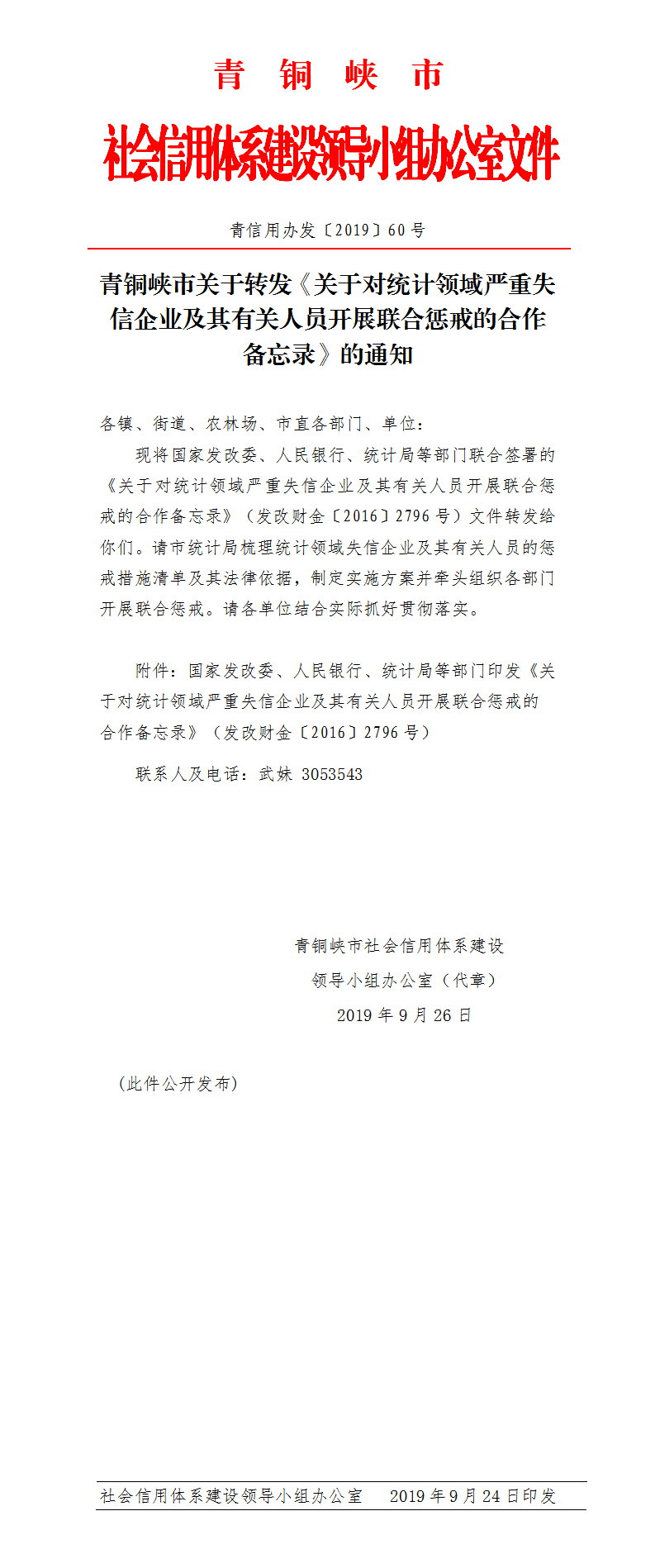 青铜峡市关于转发《关于对统计领域严重失信企业及其有关人员开展联合惩戒的合作备忘录》的通知