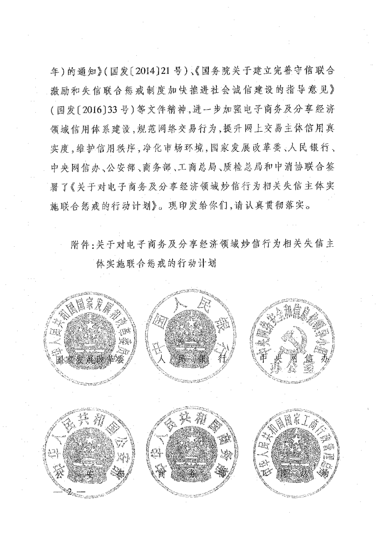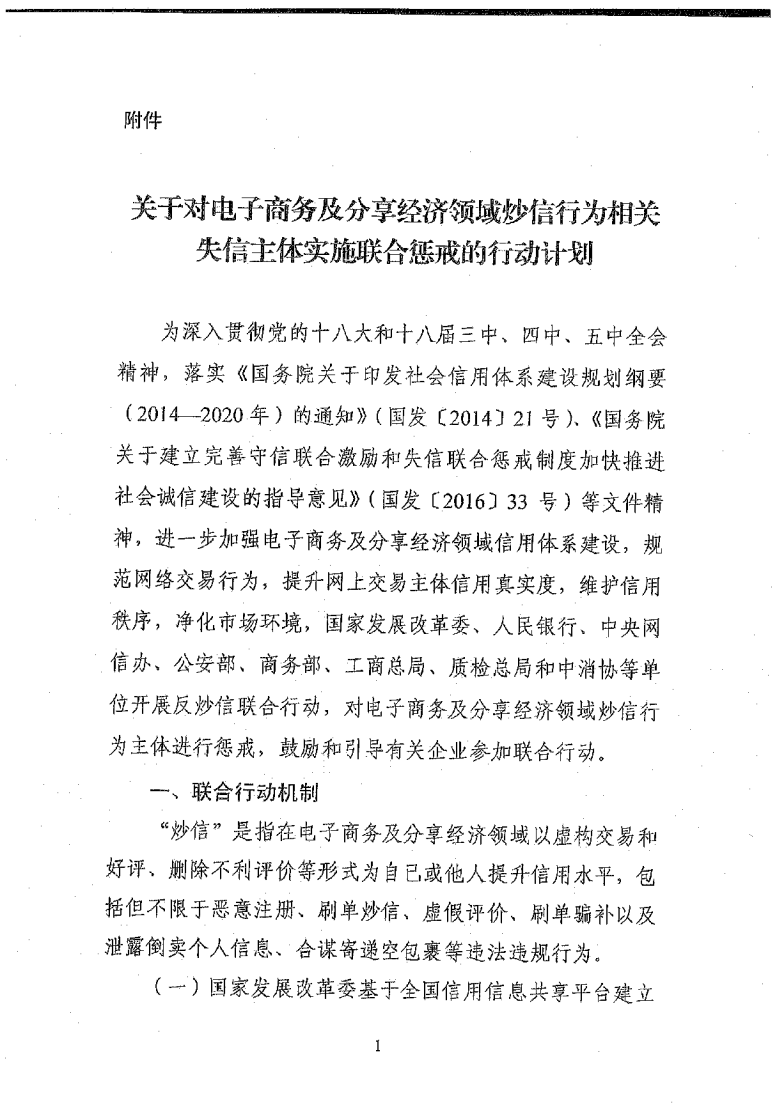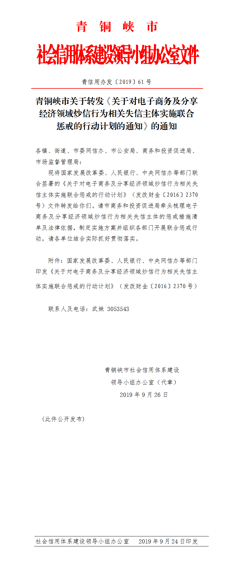 青铜峡市关于转发《关于对电子商务及分享经济领域炒信行为相关失信主体实施联合惩戒的行动计划的通知》的通知