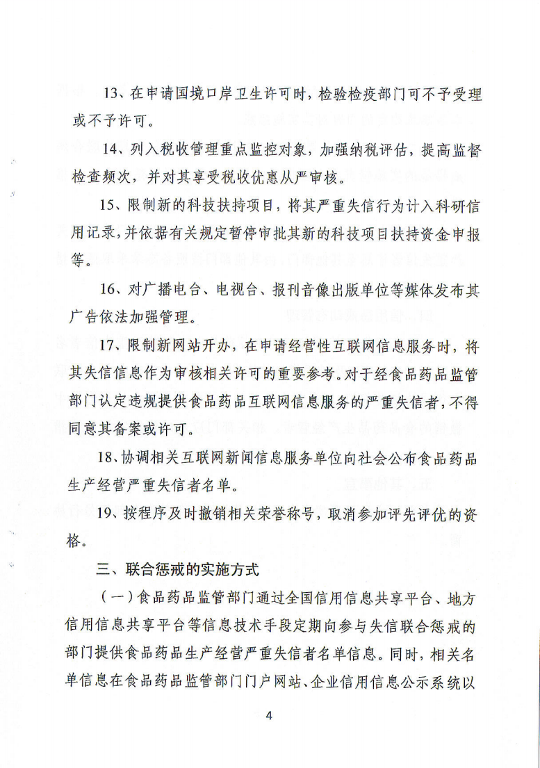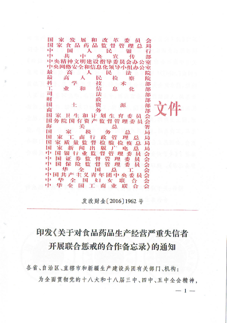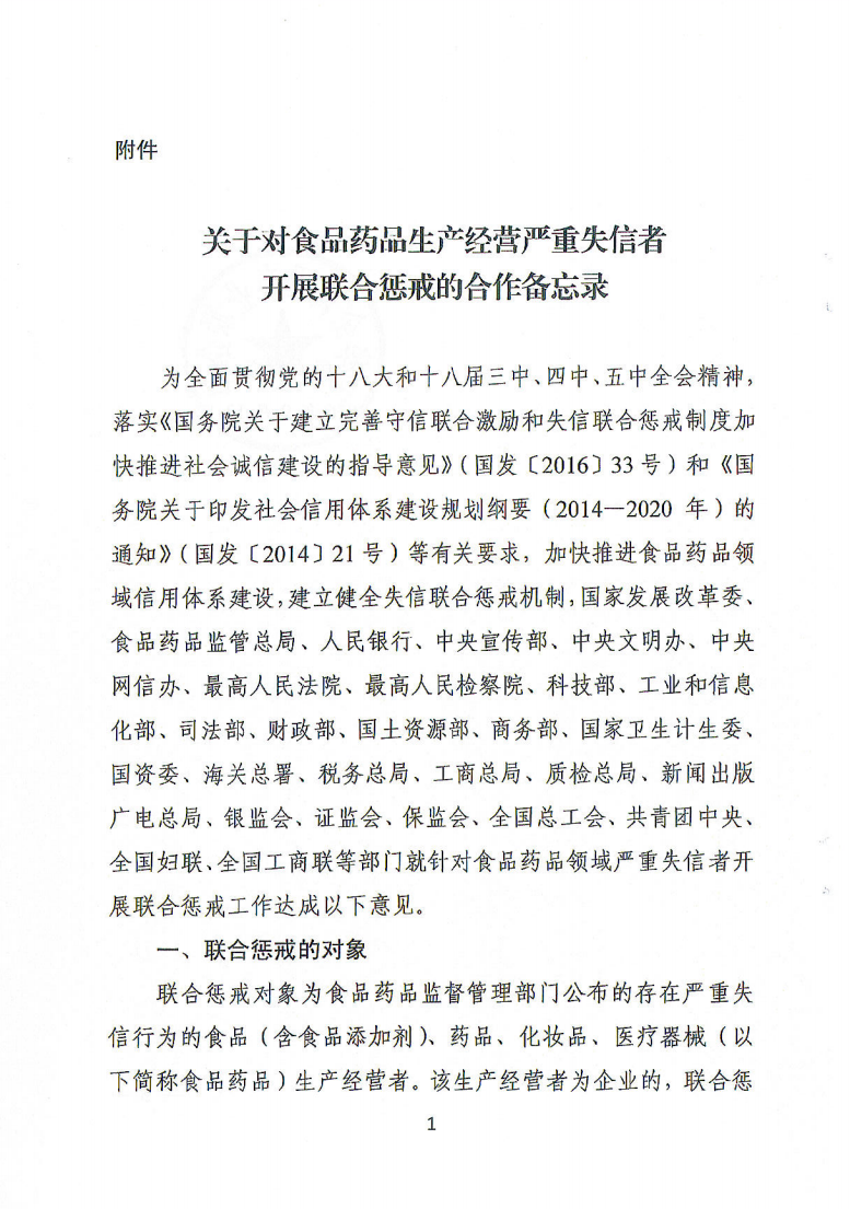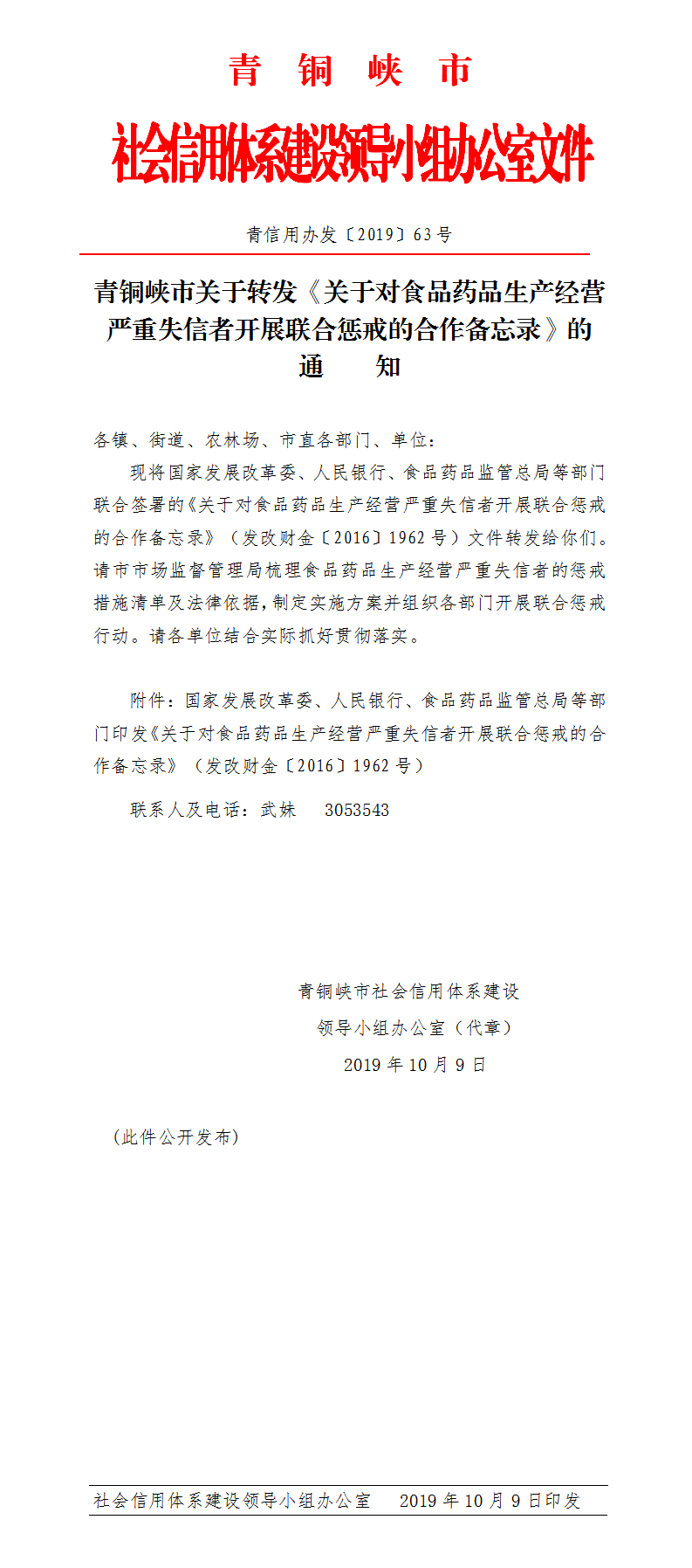 青铜峡市关于转发《关于对食品药品生产经营严重失信者开展联合惩戒的合作备忘录》的通知