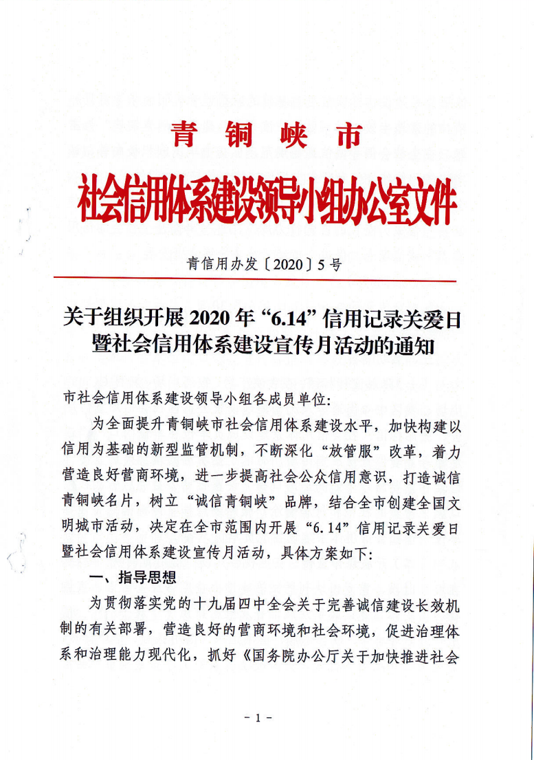 关于组织开展2020年“6.14”信用记录关爱日暨社会信用体系建设宣传月活动的通知